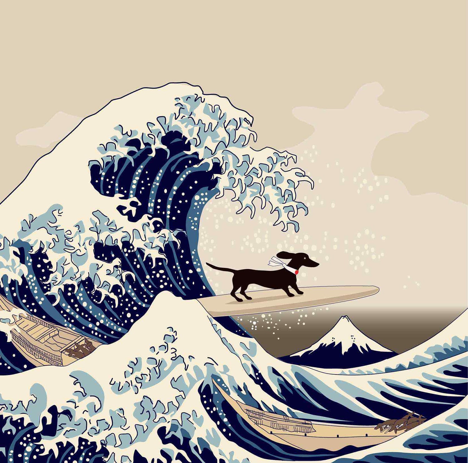 Great Wave Dachshund Greetings Card