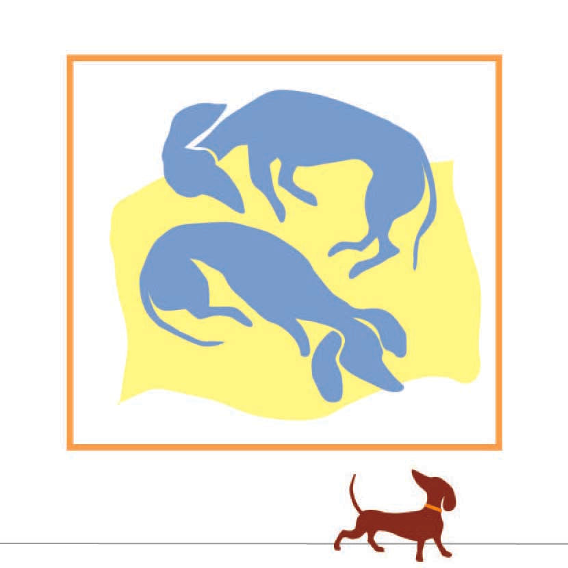 The best card for the Art loving dachshund owner which humorously pays homage to Henri Matisse. Blue sleeping dachshunds.