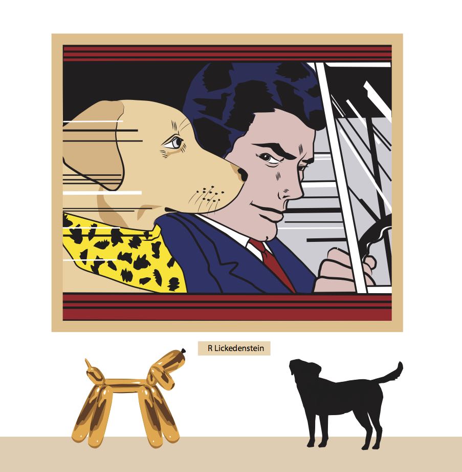 A little play on words. Lichtenstein's best Labrador friend is hoping that they are driving to the park. Surely not the dreaded vet. The park it is.
