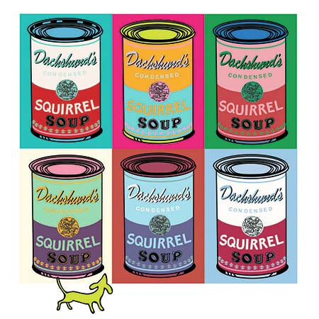 Squirrel Soup may look familiar. In homage to Warhol's Campbells Soup we see this canine version. Show me a dog who doesn't go for a squirrel. OK Henry didn't. But Ned yes please!